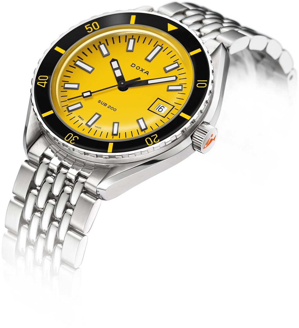 Doxa SUB 200 to młoda linia modeli tej marki; Firma wprowadziła go na rynek w 2019 roku jako jeden z modeli podstawowych w świecie zegarków do nurkowania. Jest to model z klasyczną, okrągłą obudową ze stali nierdzewnej (316L), która zawiera wiele typowych elementów wzornictwa Doxa. Należą do nich na przykład ramka z charakterystycznym reliefem na obwodzie, wyjątkowa paleta siedmiu kolorów, w tym kultowy pomarańczowy, charakterystyczne wskazówki i bogate wykorzystanie elementów luminescencyjnych.