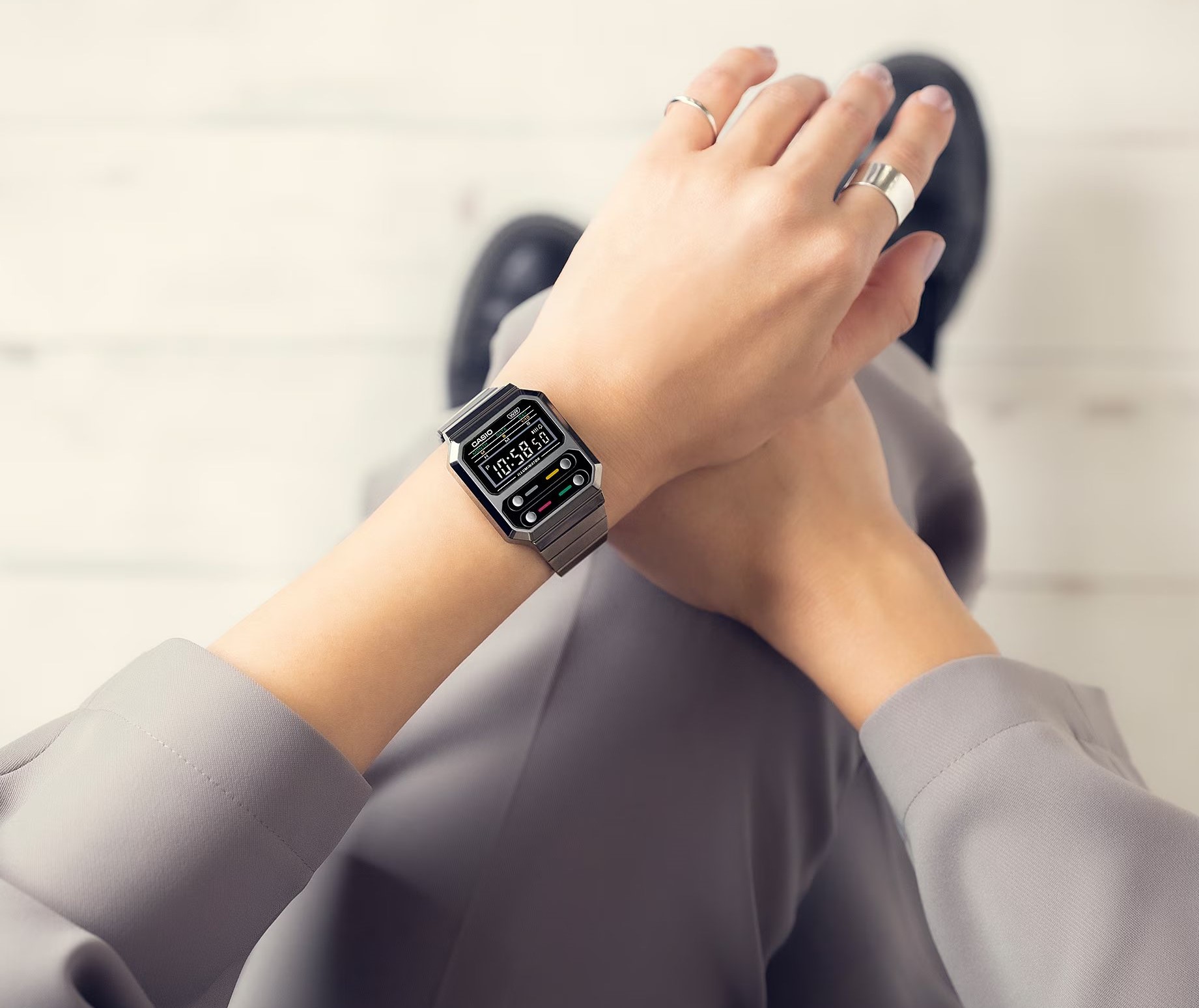 Dwadzieścia lat później, gdy firma rozszerzała swoje portfolio, wybór padł na zegarki na rękę, które w tym czasie przechodziły rewolucję wraz z pojawieniem się technologii kwarcowej. To właśnie na nią, w połączeniu z cyfrowym wyświetlaniem czasu, początkowo postawiła firma Casio. Firma postrzegała tę kombinację jako okazję do wykorzystania swojej zaawansowanej technologii układów scalonych opracowanej specjalnie dla kalkulatorów. W rezultacie pierwszy Casiotron był również pierwszym zegarkiem z automatycznym kalendarzem, który prawidłowo ustawiał datę w krótszych i dłuższych miesiącach. Wkrótce potem zegarki Casio otrzymały inne zaawansowane funkcje, takie jak wieczny kalendarz z poprawną funkcją lat przestępnych, stoper, czas światowy i wiele innych. Ale innowacje pojawiły się również w innych obszarach: po raz pierwszy Casio zastosowało plastik w obudowie zegarka, aw 1983 roku firma wprowadziła pierwszy naprawdę odporny na wstrząsy zegarek G-Shock.