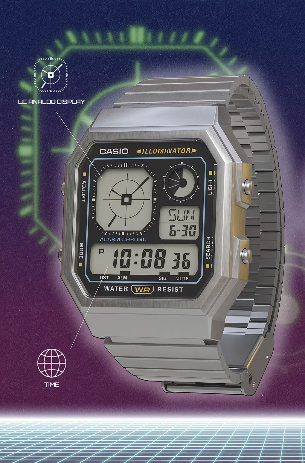 Dwadzieścia lat później, gdy firma rozszerzała swoje portfolio, wybór padł na zegarki na rękę, które w tym czasie przechodziły rewolucję wraz z pojawieniem się technologii kwarcowej. To właśnie na nią, w połączeniu z cyfrowym wyświetlaniem czasu, początkowo postawiła firma Casio. Firma postrzegała tę kombinację jako okazję do wykorzystania swojej zaawansowanej technologii układów scalonych opracowanej specjalnie dla kalkulatorów. W rezultacie pierwszy Casiotron był również pierwszym zegarkiem z automatycznym kalendarzem, który prawidłowo ustawiał datę w krótszych i dłuższych miesiącach. Wkrótce potem zegarki Casio otrzymały inne zaawansowane funkcje, takie jak wieczny kalendarz z poprawną funkcją lat przestępnych, stoper, czas światowy i wiele innych. Ale innowacje pojawiły się również w innych obszarach: po raz pierwszy Casio zastosowało plastik w obudowie zegarka, aw 1983 roku firma wprowadziła pierwszy naprawdę odporny na wstrząsy zegarek G-Shock.