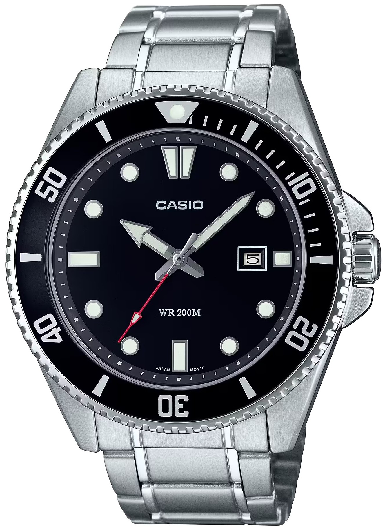 Kolekcja Casio MDV-107D-1A1VEF to męski kwarcowy zegarek w klasycznym stylu ze stalową bransoletą ze składanym zapięciem. Koperta ze stali nierdzewnej ma średnicę 44,2 milimetra, zakręcaną koronkę i czarną, jednokierunkowo obracający się aluminiową bezel ze skalą nurkową. Wyraźna czarna tarcza z wskaźnik daty trzeciej godziny jest chroniony przez szkło mineralne. Wyposażone wskazówki i indeksy warstwa luminescencyjna zapewniają lepszą czytelność w warunkach słabego oświetlenia. Wodoodporność zegarka wynosi 20 ATM< /strong>< span style="background-color: var(--bs-body-bg); color: var(--bs-body-color); rodzina czcionek: var(--bs-body-font- rodzina); rozmiar czcionki: var(--bs-body-font-size); waga czcionki: var(--bs-body-font-grubość: var(-bs-body-text); -align); "> i dlatego nadają się do pływania i nurkowania.