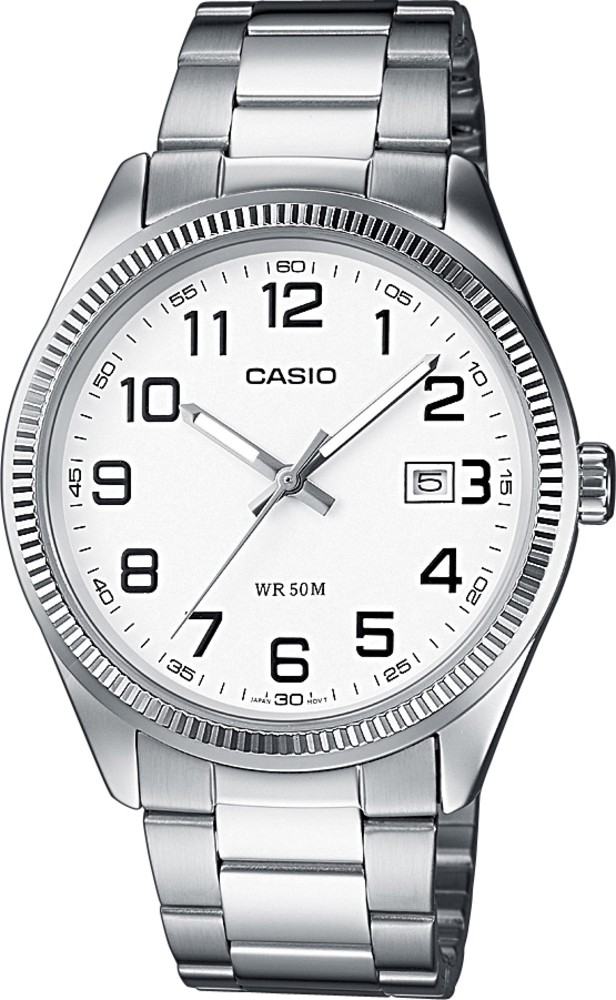 Kolekcja Casio MTP-1302PD-7BVEF to męski kwarcowy zegarek w klasycznym stylu ze stalową bransoletą i mosiężną kopertą średnicę 38,5 milimetra. Przejrzysta biała tarcza ze datownikiem na godzinie trzeciej jest chroniona szkłem mineralnym. Wskazówki wyposażone w warstwę luminescencyjną zapewniają lepszą czytelność w warunkach słabego oświetlenia po naświetleniu. Wodoodporność zegarka wynosi 5 ATM, dzięki któremu jest odporny na zachlapania i zachlapania i opady.