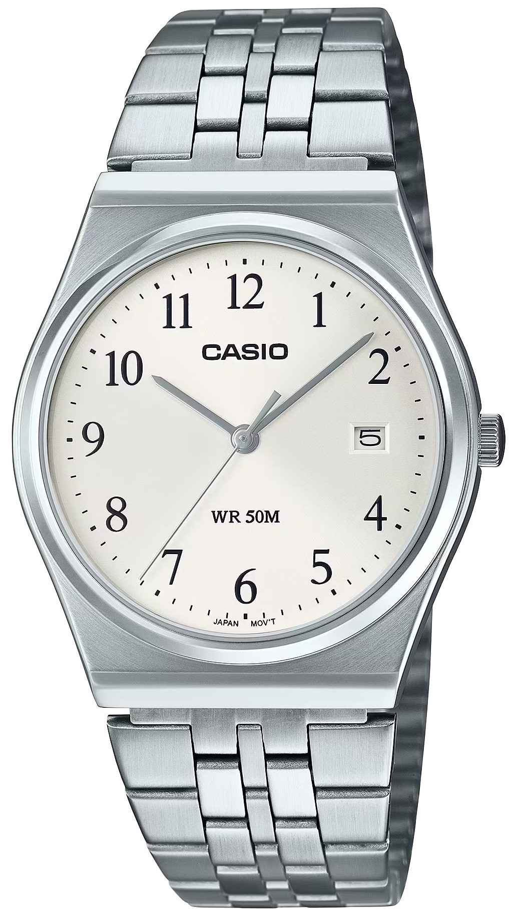 Kolekcja Casio MTP-B145D-7BVEF to kwarcowy zegarek unisex o klasycznym designie z pięciorzędową stalową bransoletą ze składanym zapięciem i stalową kopertą średnicę 35 milimetrów. Srebrna tarcza ze szlifem słonecznym i datownikiem na godzinie trzeciej jest chroniona szkłem mineralnym. Wodoodporność zegarka wynosi 5 ATM, dzięki któremu jest odporny na zachlapania i zachlapania i opady.