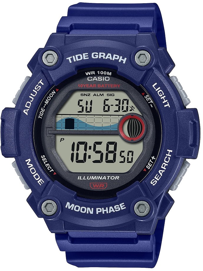 Timer, Stoper, Data, Miesiąc, Kalendarz, Podświetlenie, Alarm, Podwójny czas, Dzień tygodnia, Fazy księżyca