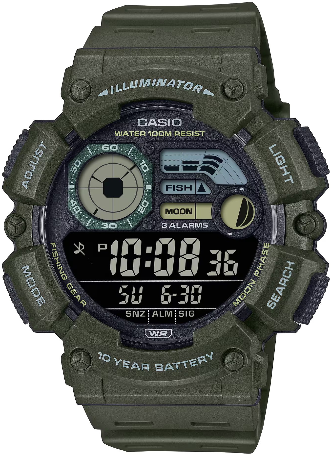Fazy księżyca, Alarm, Timer, Miesiąc, Dzień tygodnia, Podświetlenie, Podwójny czas, Stoper, Kalendarz, Data, Formacie 24-godzinnym, režim rybolovu