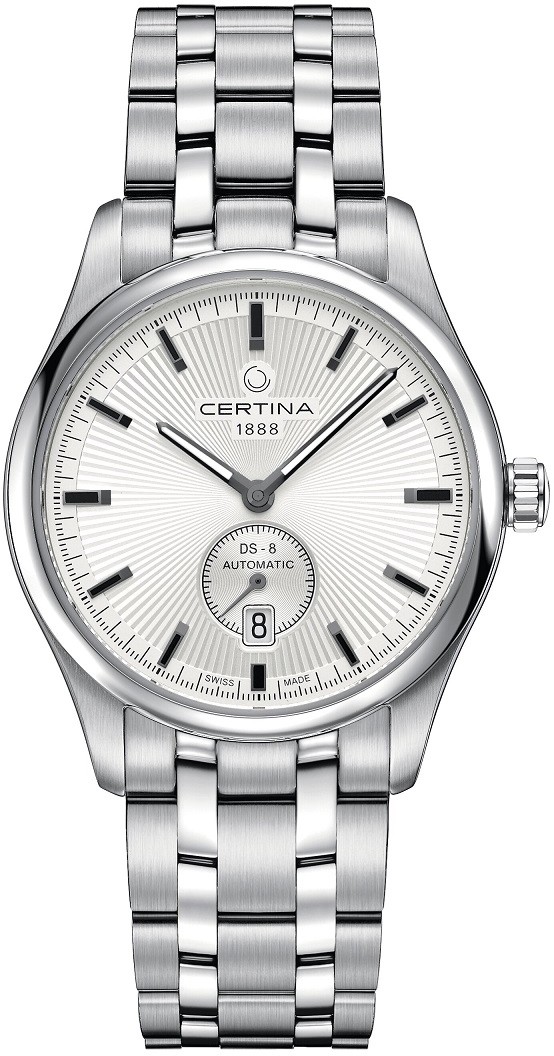 Kolekcja DS-8 to uniwersalna i niedroga oferta zegarków marki Certina. Oferuje modele w kilku stylach z kopertami ze stali nierdzewnej, powłoką PVD i tytanem, które nadają się do noszenia na co dzień i do noszenia w towarzystwie. W modelach serii DS-8 zastosowano precyzyjne szwajcarskie mechanizmy kwarcowe lub mechanizmy ETA Powermatic 80, które oferują rezerwę chodu na poziomie 80 godzin. Wszystkie mają 100 metrów wodoodporność i oczywiście szafirowe szkło.