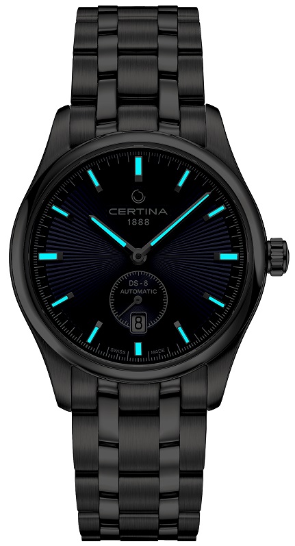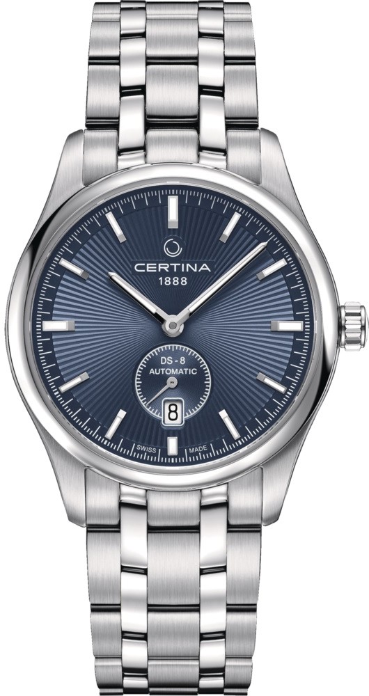 Kolekcja DS-8 to uniwersalna i niedroga oferta zegarków marki Certina. Oferuje modele w kilku stylach z kopertami ze stali nierdzewnej, powłoką PVD i tytanem, które nadają się do noszenia na co dzień i do noszenia w towarzystwie. W modelach serii DS-8 zastosowano precyzyjne szwajcarskie mechanizmy kwarcowe lub mechanizmy ETA Powermatic 80, które oferują rezerwę chodu na poziomie 80 godzin. Wszystkie mają 100 metrów wodoodporność i oczywiście szafirowe szkło.