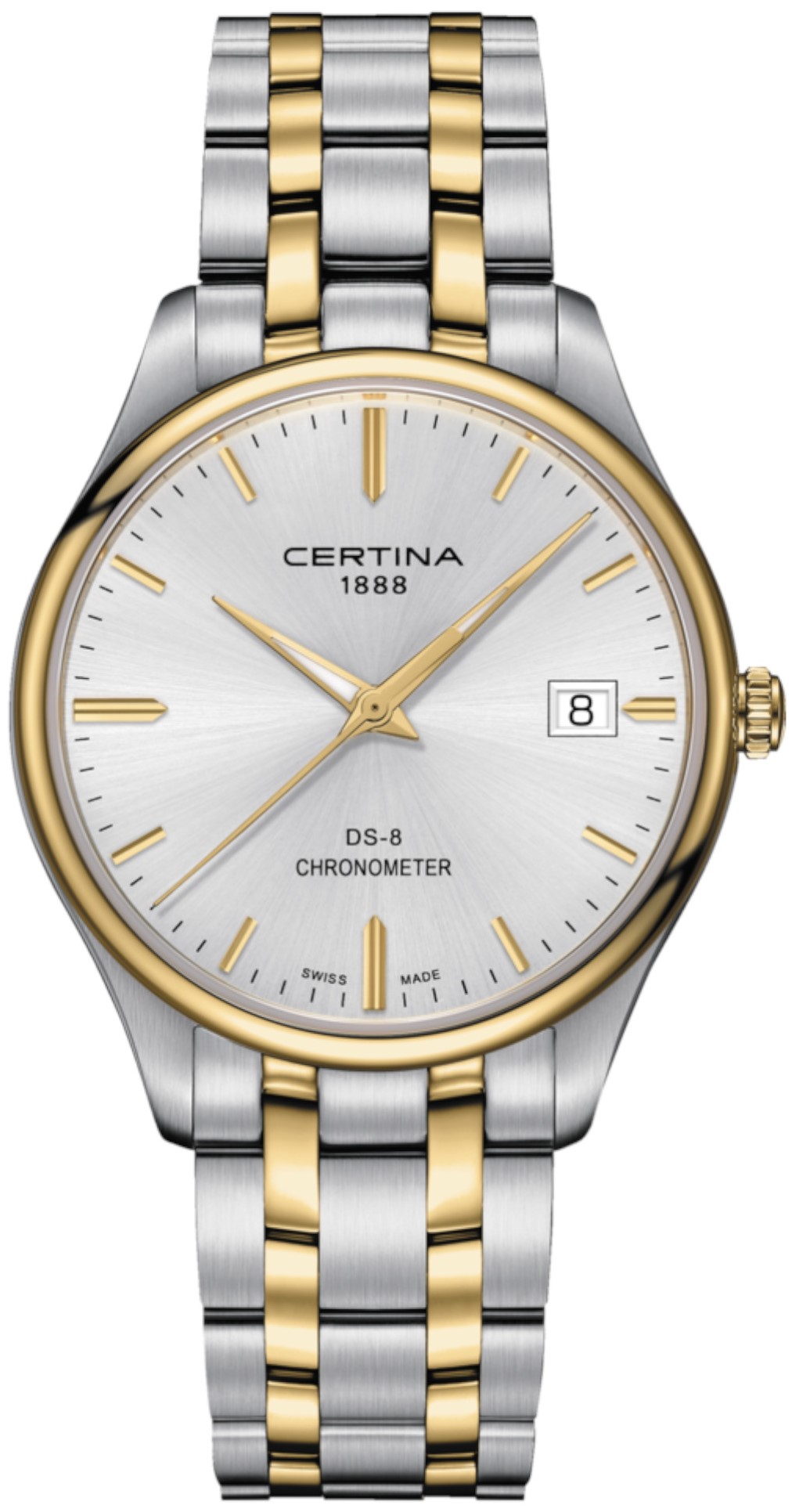 Kolekcja DS-8 to uniwersalna i niedroga oferta zegarków marki Certina. Oferuje modele w kilku stylach z kopertami ze stali nierdzewnej, powłoką PVD i tytanem, które nadają się do noszenia na co dzień i do noszenia w towarzystwie. W modelach serii DS-8 zastosowano precyzyjne szwajcarskie mechanizmy kwarcowe lub mechanizmy ETA Powermatic 80, które oferują rezerwę chodu na poziomie 80 godzin. Wszystkie mają 100 metrów wodoodporność i oczywiście szafirowe szkło.