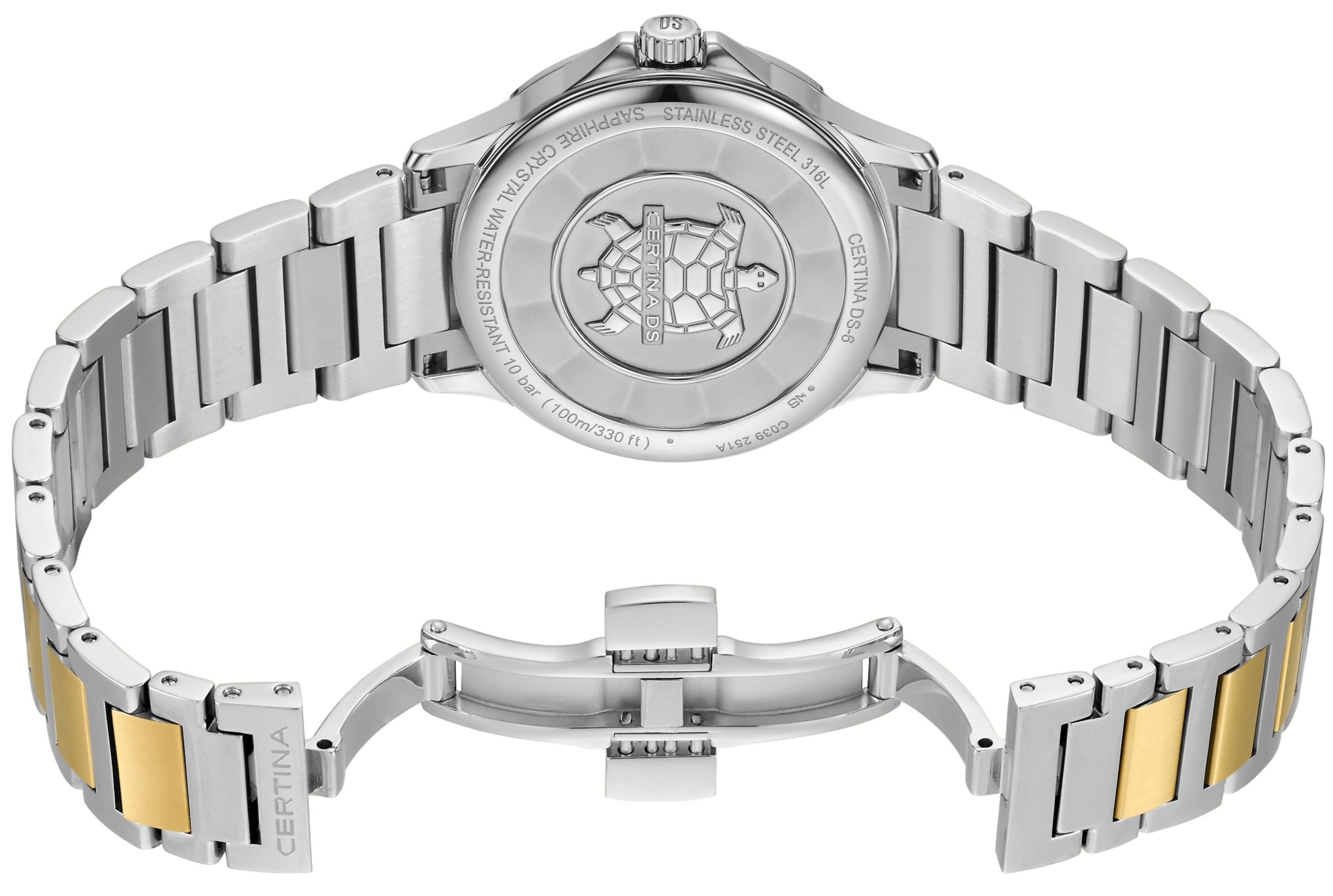 Kolekcja Certina DS-6 harmonijnie łączy w sobie różne komponenty. Dzięki szerokiemu wyborowi faktur, kolorów, precyzyjnym mechanizmom kwarcowym, innowacyjnym materiałom i szerokiemu wyborowi pasków, użytkownicy mogą wyrazić swój styl elegancją. Niektóre metalowe bransoletki modeli DS-6 mają ceramiczne elementy środkowe odporne na zarysowania. W kolekcji znajdują się zegarki ze stalową kopertą o średnicy 35 milimetrów i bardzo przystępnej cenie. Mechanizm DS-6 posiada certyfikat COSC i zapewnia wysoką precyzję.