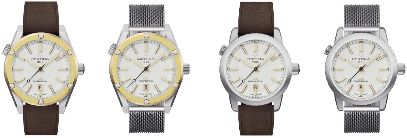 Zestaw Certina DS+ Sport & Urban C041.407.19.031.01 ma srebrną tarczę, metalowy uchwyt mediolański z zapięciem motylkowym, skórzany pasek ze sprzączką, 41-milimetrową obudowę ze stali nierdzewnej w sportowej wersji z sześcioma śrubami i powłoką PVD w kolorze złotym na zewnętrznej ramce, a także klasyczna koperta średnicę 40,4 milimetra. Dzięki temu wygląd tego męskiego zegarka można bardzo łatwo zmienić, zgodnie z osobistymi preferencjami właściciela, w zaciszu własnego domu, bez użycia jakichkolwiek narzędzi. Tarcza posiada datownik i jest chroniona wytrzymałym szkłem szafirowym z warstwą antyrefleksyjną. Zastosowane indeksy godzinowe wyrysowane są wskazówkami w kolorze złotym i pokryte powłoką luminescencyjną Super-LumiNova®, która gwarantuje doskonałą czytelność w złych warunkach oświetleniowych. Zegarek napędzany jest mechanizmem Powermatic 80.611 z naciągiem automatycznym i rezerwą chodu wynoszącą około 80 godzin. Kaliber jest wyposażony w koło zamachowe Nivachron™, które jest specjalnym materiałem antymagnetycznym, dzięki któremu zegarek jest wysoce odporny na pola magnetyczne. Mechanizm ten z funkcją hakowania można w razie potrzeby nakręcić także ręcznie za pomocą zakręcanej koronki. W modelu zastosowano technologięDS (Double Security), stosowaną i doskonaloną od 1959 roku, dzięki której zegarek ma zwiększoną odporność na uderzenia i wodę. Wodoodporność zegarka wynosi 20 ATM, co czyni go odpowiednim wyborem do snorkelingu i nurkowania.