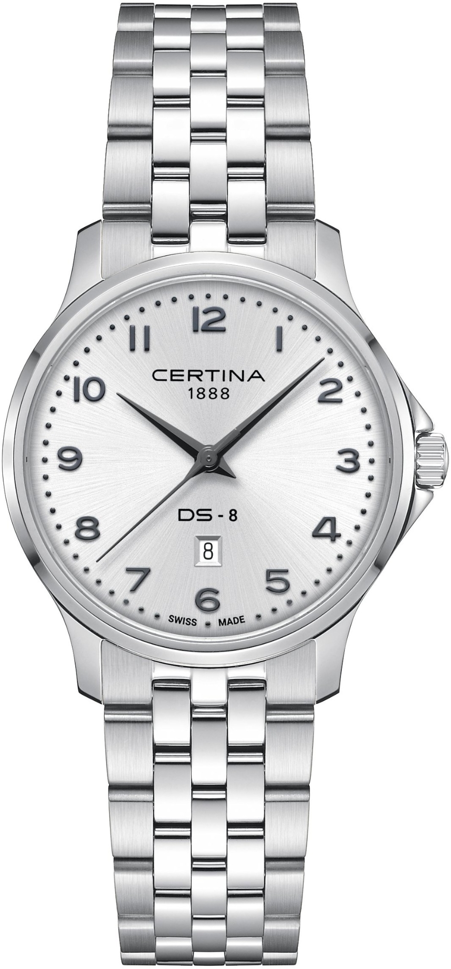 Kolekcja DS-8 to uniwersalna i niedroga oferta zegarków marki Certina. Oferuje modele w kilku stylach z kopertami ze stali nierdzewnej, powłoką PVD i tytanem, które nadają się do noszenia na co dzień i do noszenia w towarzystwie. W modelach serii DS-8 zastosowano precyzyjne szwajcarskie mechanizmy kwarcowe lub mechanizmy ETA Powermatic 80, które oferują rezerwę chodu na poziomie 80 godzin. Wszystkie mają 100 metrów wodoodporność i oczywiście szafirowe szkło.