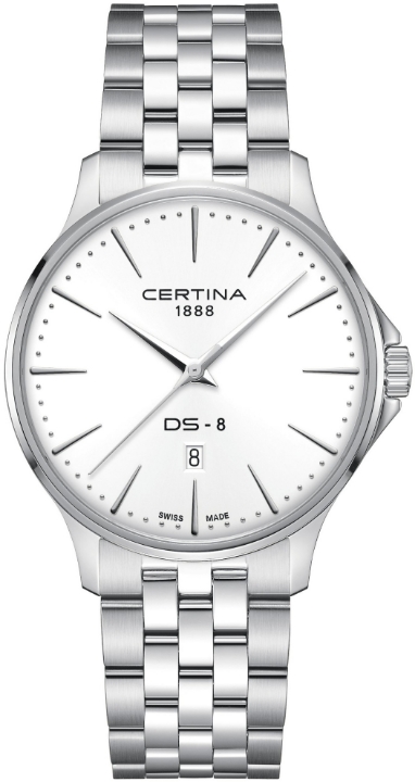 Kolekcja DS-8 to uniwersalna i niedroga oferta zegarków marki Certina. Oferuje modele w kilku stylach z kopertami ze stali nierdzewnej, powłoką PVD i tytanem, które nadają się do noszenia na co dzień i do noszenia w towarzystwie. W modelach serii DS-8 zastosowano precyzyjne szwajcarskie mechanizmy kwarcowe lub mechanizmy ETA Powermatic 80, które oferują rezerwę chodu na poziomie 80 godzin. Wszystkie mają 100 metrów wodoodporność i oczywiście szafirowe szkło.