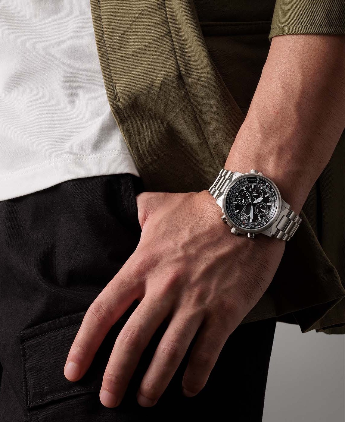 Citizen Promaster Sky to zegarek stworzony z myślą o pilotach, oferujący wszystko, czego potrzebują podczas lotu. Dzięki technologiom takim jak Eco-Drive i łączenie z zegarem atomowym A-T, zapewnia niezawodność i precyzję, niezbędne w powietrzu. Podwyższona odporność na magnetyzm oraz doskonała czytelność tarczy czynią go idealnym narzędziem dla pilotów i nawigatorów. Wodoodporność do 200 metrów to dodatkowy atut, który docenią miłośnicy sportów wodnych. Inspirowany światem lotnictwa, Citizen Promaster Sky to nie tylko zegarek, ale i niezawodny towarzysz każdej podróży.