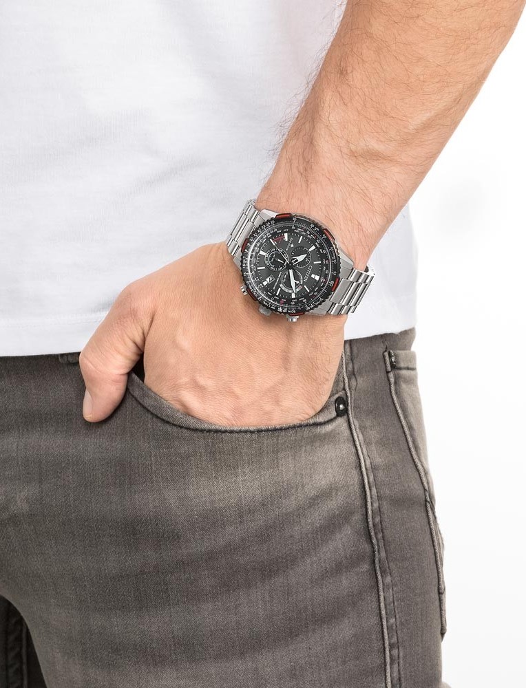 Citizen Promaster Sky to zegarek stworzony z myślą o pilotach, oferujący wszystko, czego potrzebują podczas lotu. Dzięki technologiom takim jak Eco-Drive i łączenie z zegarem atomowym A-T, zapewnia niezawodność i precyzję, niezbędne w powietrzu. Podwyższona odporność na magnetyzm oraz doskonała czytelność tarczy czynią go idealnym narzędziem dla pilotów i nawigatorów. Wodoodporność do 200 metrów to dodatkowy atut, który docenią miłośnicy sportów wodnych. Inspirowany światem lotnictwa, Citizen Promaster Sky to nie tylko zegarek, ale i niezawodny towarzysz każdej podróży.