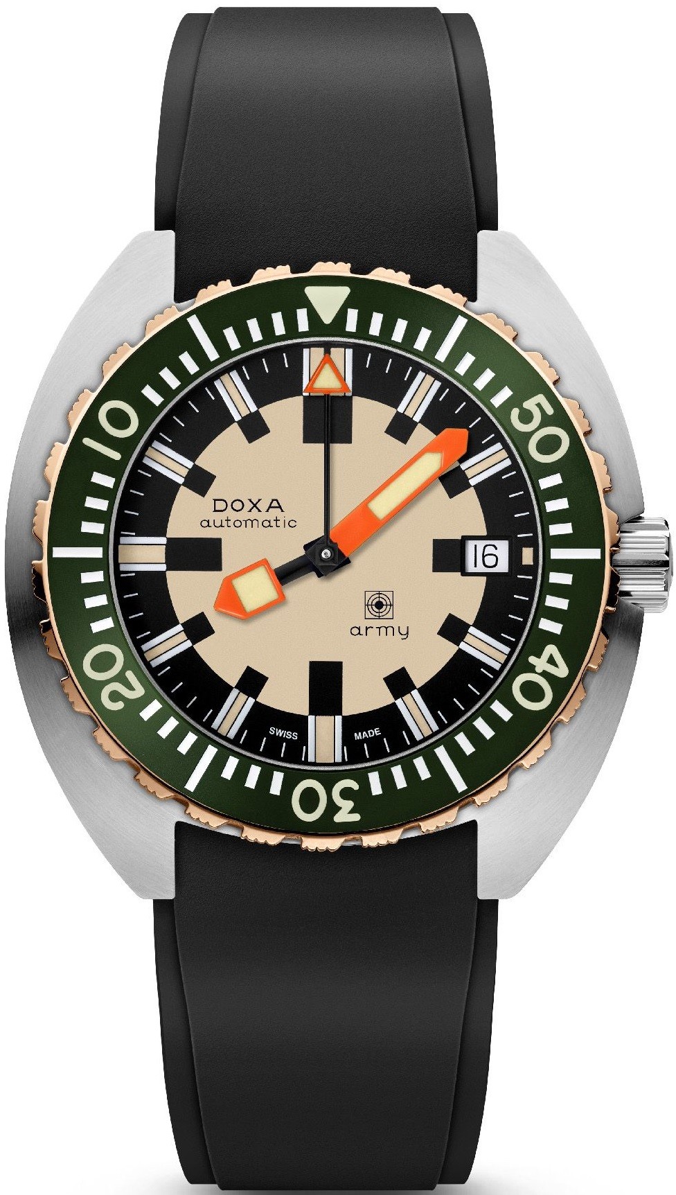 Linia modeli Doxa Army to nowoczesna forma celebracji historycznej tradycji marki i współpracy ze Szwajcarską Armią. Firma kupowała zegarki Doxa w latach 1968–1979 na potrzeby swoich jednostek nurkowych. Modele armii nawiązują do tej historycznej współpracy. Estetyka jest taka sama jak w oryginalnych modelach, ale Doxa dodaje do nich współczesne rozwiązania i detale techniczne. Modele serii Army oparte są na tradycyjnym typie 300T, ale mają smuklejszą konstrukcję o grubości SUB 300β, którą również charakteryzuje się model SUB 300β.