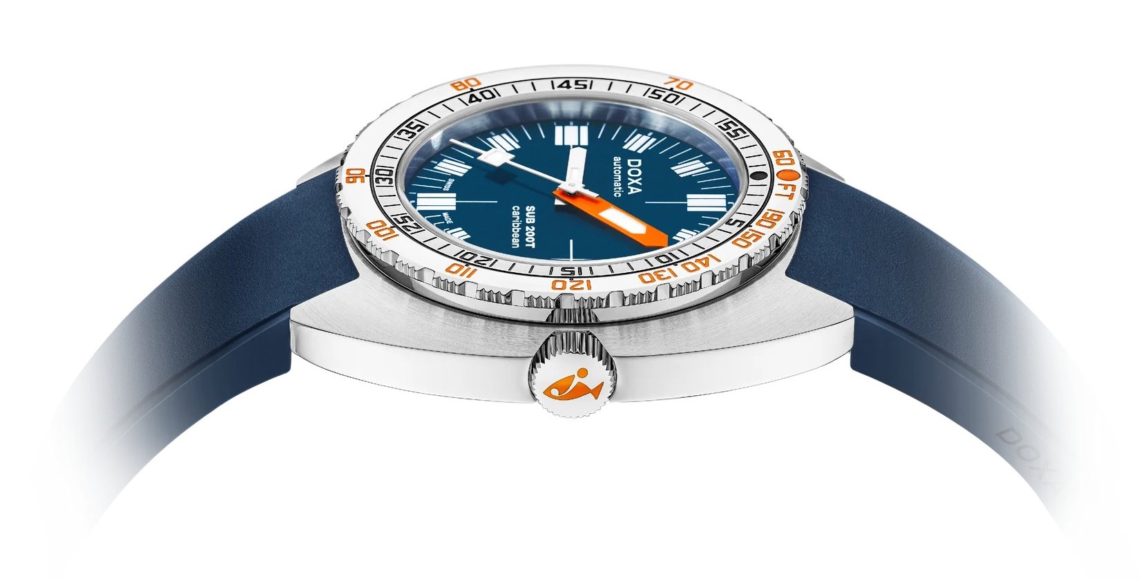 Model SUB 200T ma również typowy pierścień z podziałką potencjalnej głębokości i czasu nurkowania bezdekompresyjnego oraz charakterystyczne wskazówki zapewniające maksymalną czytelność pod wodą. Oczywiście, najwyższej klasy obróbka mechaniczna i wodoodporność do głębokości 200 metrów są także w cenie. Oprócz typowej dla tej marki bransolety ze stali nierdzewnej z stylu "beads of rice", modele 200T można również nabyć na pasku gumowym, którego kolor pasuje do tarczy.