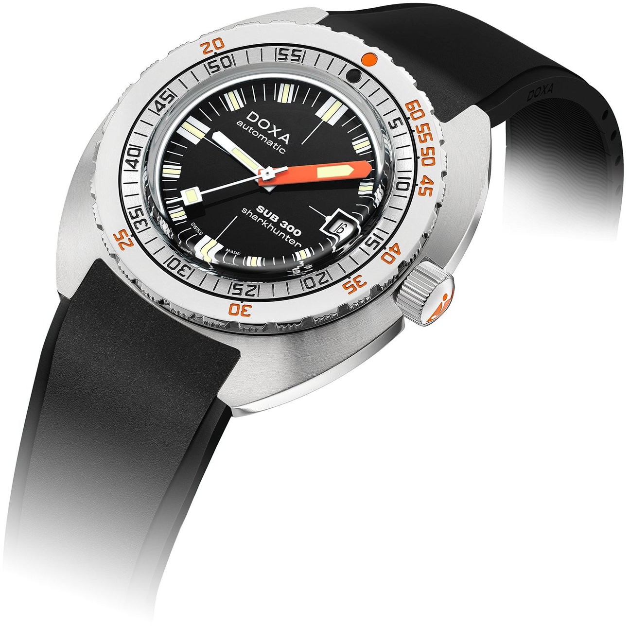Doxa SUB 300 to żywa legenda, jedna z dwóch w portfolio marki. Jest to nowoczesna wersja tradycyjnego modelu zegarka do nurkowania wprowadzonego w 1967 roku. To właśnie ten model zdefiniował nowoczesny styl projektowania zegarków Doxa i ich praktyczne cechy. Jako pierwszy wprowadził nie tylko charakterystycznie ukształtowaną kopertę, ale także obrotowy w jednym kierunku pierścień, który oprócz skali minutowej zawiera także skalę służącą do obliczania bezpiecznej głębokości bez konieczności przystanków dekompresyjnych. Skala w tym przypadku jest ponumerowana w metrach. W modelu SUB 300 wprowadzono również radykalny pomarańczowy kolor tarczy, który okazał się bardzo praktyczny pod względem czytelności pod wodą. To właśnie kolor pomarańczowy stał się ulubionym kolorem Cousteau. Legendarny filmowiec i nurek tak bardzo pokochał ten zegarek, że jego firma, US Divers, została wyłącznym dystrybutorem marki Doxa w USA.