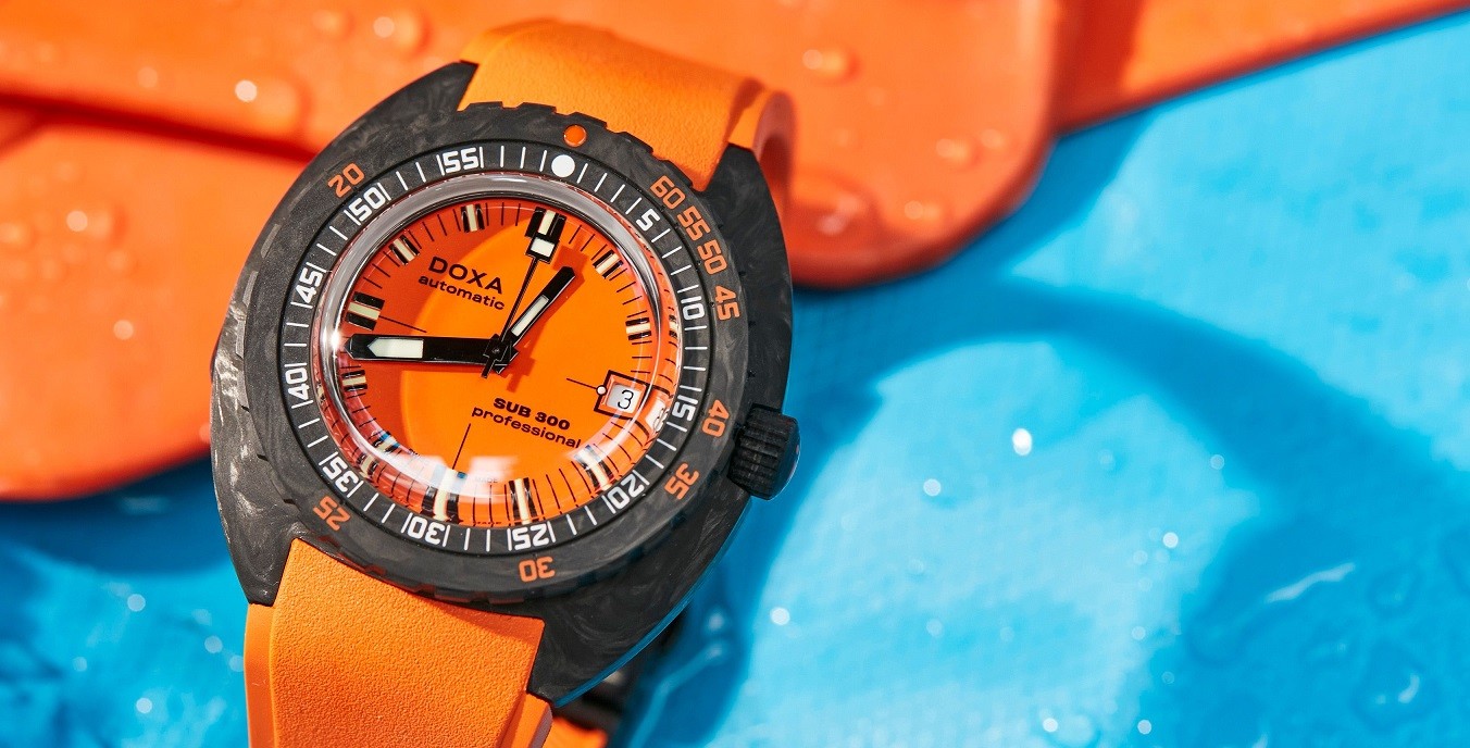 Doxa SUB 300 to żywa legenda, jedna z dwóch w portfolio marki. Jest to nowoczesna wersja tradycyjnego modelu zegarka do nurkowania wprowadzonego w 1967 roku. To właśnie ten model zdefiniował nowoczesny styl projektowania zegarków Doxa i ich praktyczne cechy. Jako pierwszy wprowadził nie tylko charakterystycznie ukształtowaną kopertę, ale także obrotowy w jednym kierunku pierścień, który oprócz skali minutowej zawiera także skalę służącą do obliczania bezpiecznej głębokości bez konieczności przystanków dekompresyjnych. Skala w tym przypadku jest ponumerowana w metrach. W modelu SUB 300 wprowadzono również radykalny pomarańczowy kolor tarczy, który okazał się bardzo praktyczny pod względem czytelności pod wodą. To właśnie kolor pomarańczowy stał się ulubionym kolorem Cousteau. Legendarny filmowiec i nurek tak bardzo pokochał ten zegarek, że jego firma, US Divers, została wyłącznym dystrybutorem marki Doxa w USA.