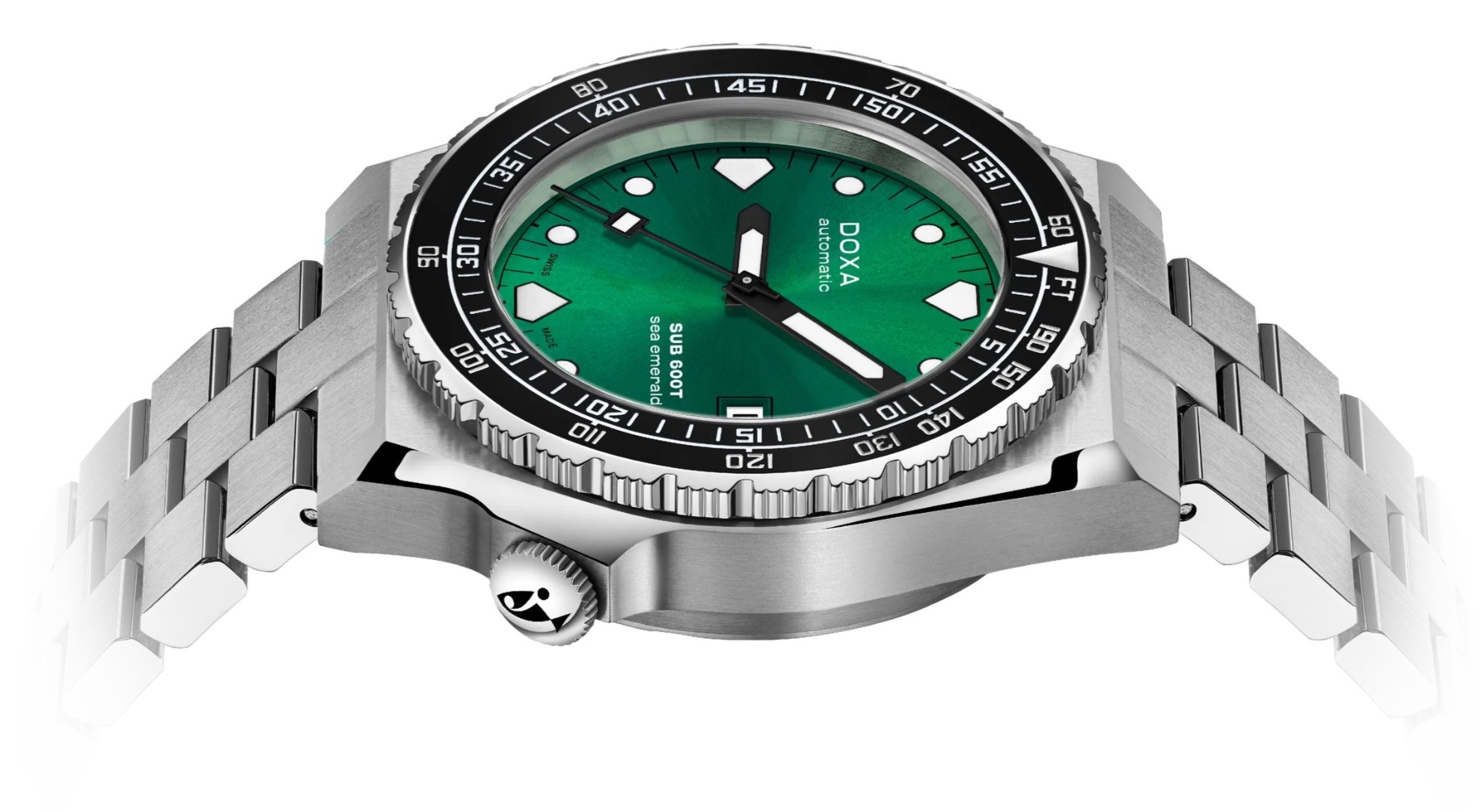 Koronka tym razem znajduje się na godzinie czwartej, a stalowa bransoleta ponownie ma ostro wycięte linie i jest trzyogniwowa. Alternatywą jest pasek NATO, który gwarantuje, że zegarek pozostanie na nadgarstku, nawet jeśli jeden z zawiasów ulegnie uszkodzeniu. Pomimo tych różnic, SUB 600T jest znów wyraźnie rozpoznawalny jako przedstawiciel swojej marki. Jest to zasługą zarówno bogatej gamy kolorów, jak i charakterystycznego kształtu pierścienia oraz podwójnej skali z minutami i bezpieczną głębokością do nurkowania bez konieczności dekompresji w torach. Można wybrać ramkę ze stalową lub ceramiczną wkładką. Model SUB 600T jest wodoodporny do głębokości 600 metrów.