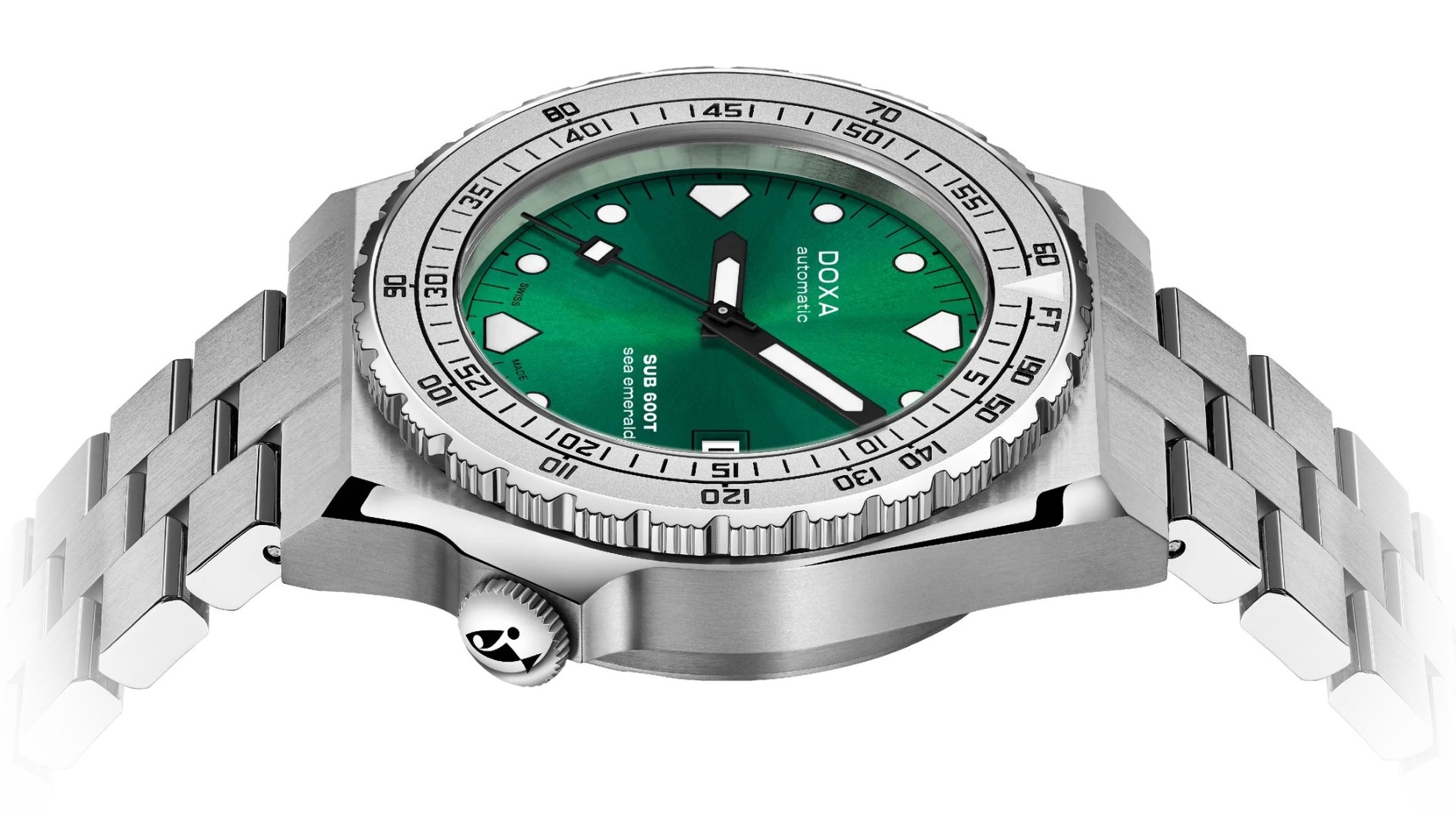Koronka tym razem znajduje się na godzinie czwartej, a stalowa bransoleta ponownie ma ostro wycięte linie i jest trzyogniwowa. Alternatywą jest pasek NATO, który gwarantuje, że zegarek pozostanie na nadgarstku, nawet jeśli jeden z zawiasów ulegnie uszkodzeniu. Pomimo tych różnic, SUB 600T jest znów wyraźnie rozpoznawalny jako przedstawiciel swojej marki. Jest to zasługą zarówno bogatej gamy kolorów, jak i charakterystycznego kształtu pierścienia oraz podwójnej skali z minutami i bezpieczną głębokością do nurkowania bez konieczności dekompresji w torach. Można wybrać ramkę ze stalową lub ceramiczną wkładką. Model SUB 600T jest wodoodporny do głębokości 600 metrów.