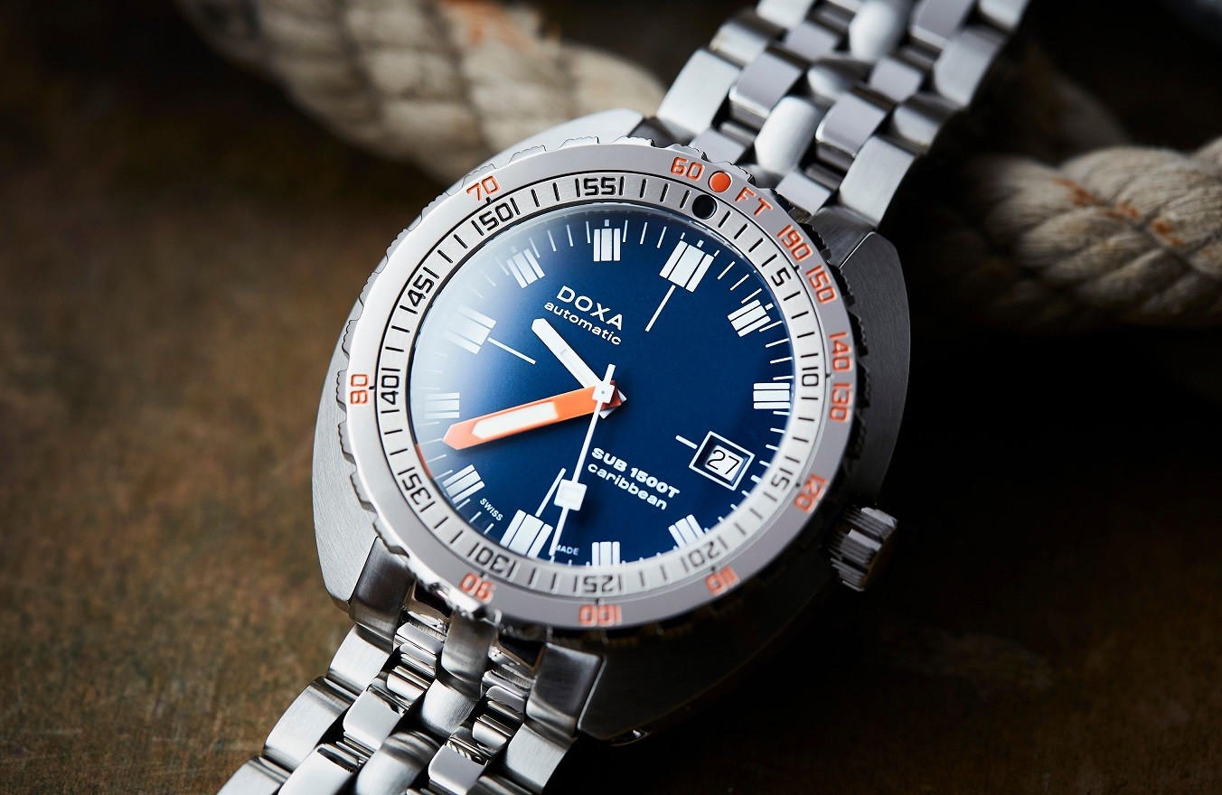 DOXA SUB 1500T to najbardziej ekstremalny model, jaki obecnie oferuje marka Doxa. Podąża śladami dawnego 300T Conquistador, ale dzięki nowoczesnym technologiom jego funkcje znacznie się rozwinęły. Zegarek z kopertą o średnicy 45 milimetrów, zakręcaną koronką i zaworem helowym z łatwością wytrzymuje nurkowania na głębokości do 1500 metrów, dzięki czemu idealnie nadaje się do najtrudniejszych podwodnych przygód. Oczywiście, posiadają wszystkie charakterystyczne cechy modeli do nurkowania Doxa, w tym charakterystyczny pierścień ze skalą minutową i stopową, dzięki czemu nurkowie mogą łatwo sprawdzić bezpieczną głębokość nurkowania bez konieczności przystanków dekompresyjnych.