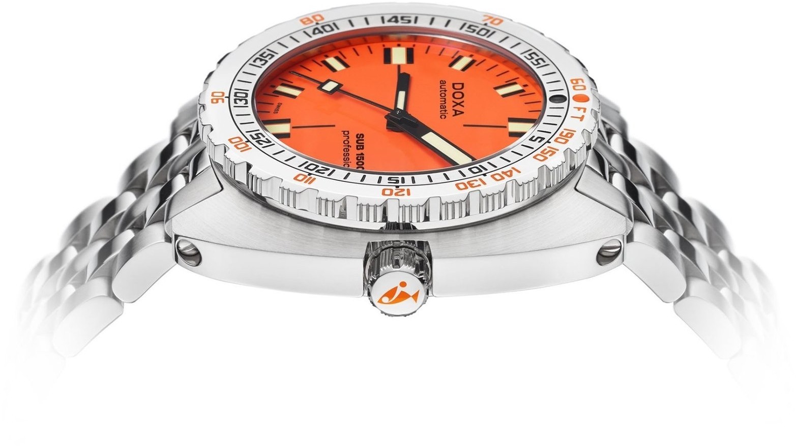 DOXA SUB 1500T to najbardziej ekstremalny model, jaki obecnie oferuje marka Doxa. Podąża śladami dawnego 300T Conquistador, ale dzięki nowoczesnym technologiom jego funkcje znacznie się rozwinęły. Zegarek z kopertą o średnicy 45 milimetrów, zakręcaną koronką i zaworem helowym z łatwością wytrzymuje nurkowania na głębokości do 1500 metrów, dzięki czemu idealnie nadaje się do najtrudniejszych podwodnych przygód. Oczywiście, posiadają wszystkie charakterystyczne cechy modeli do nurkowania Doxa, w tym charakterystyczny pierścień ze skalą minutową i stopową, dzięki czemu nurkowie mogą łatwo sprawdzić bezpieczną głębokość nurkowania bez konieczności przystanków dekompresyjnych.