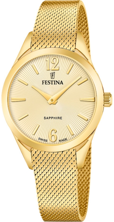 Historia marki Festina sięga początków XX wieku i zaczyna się w szwajcarskim miasteczku La Chaux-de-Fonds, słynącym z długiej tradycji zegarmistrzowskiej. Z czasem pieczę nad firmą objął hiszpański przedsiębiorca Miguel Rodriguez, który rozsławił ją dzięki wprowadzeniu mechanizmów na baterie. Obecnie serce firmy znajduje się w Barcelonie, dzięki czemu zegarki Festina wyrażają zarówno osławioną, szwajcarską precyzję, jak i temperament oraz nowoczesny styl Południa.