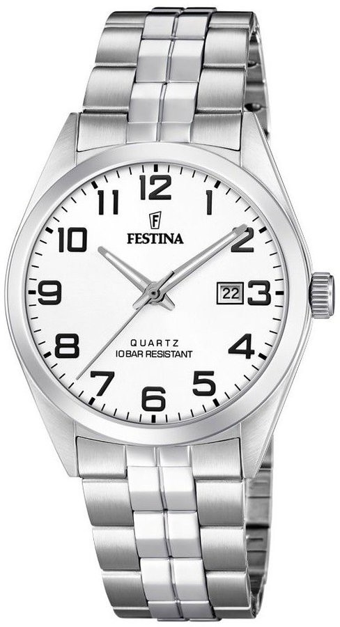 Festina Classics 20437/1 to męski zegarek na baterię w klasycznym stylu na stalowej bransolecie ze składanym zapięciem. Koperta ze stali nierdzewnej ma średnicę 40 milimetrów. Biała tarcza ze datownikiem na godzinie trzeciej jest chroniona trwałym szkłem mineralnym. Wskazówki mają powłokę luminescencyjną, która po naświetleniu ułatwia czytanie w słabych warunkach oświetleniowych. Zegarek napędzany jest mechanizmem kwarcowym Miyota GM10 z dokładnością ±20 sekund na miesiąc. Dzięki wodoszczelności 10 ATM zegarek nadaje się do pływania i snorkelingu.