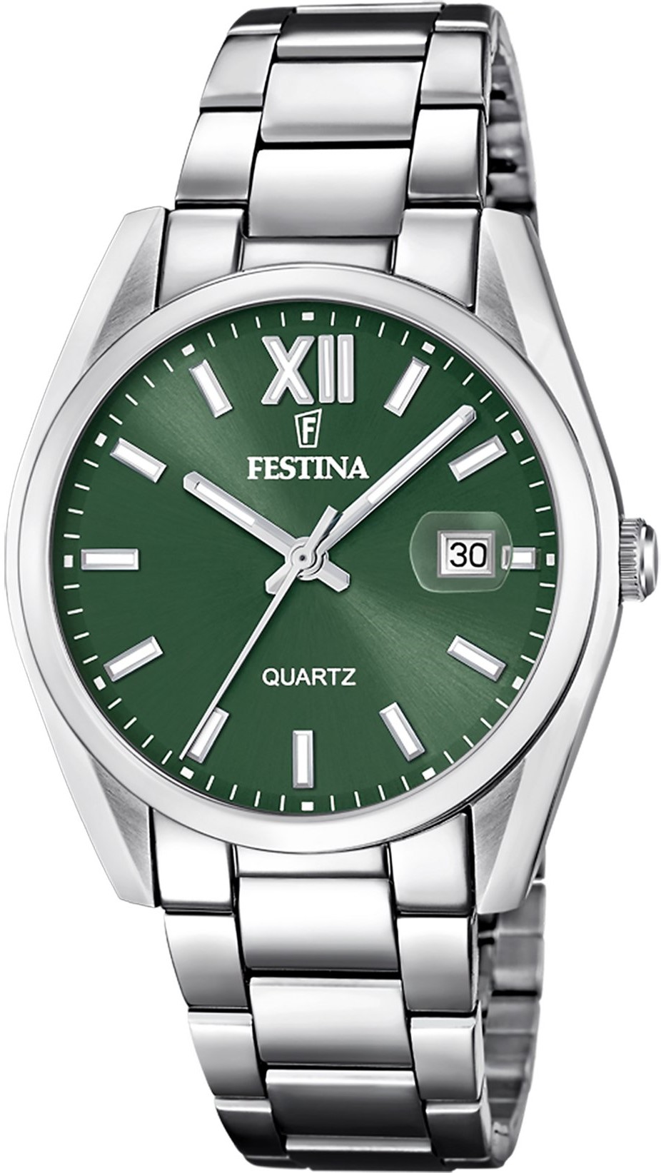 Festina Classics 20683/5 to męski zegarek na baterię w klasycznym stylu na stalowej bransolecie ze składanym zapięciem. Koperta ze stali nierdzewnej ma średnicę 40 milimetrów. Przezroczysta zielona tarcza ze szlifem słonecznym jest chroniona wytrzymałym szkłem mineralnym ze szkłem powiększającym nad datownikiem. Wskazówki i indeksy posiadają powłokę luminescencyjną, która po podświetleniu ułatwia czytelność przy słabym naświetleniu. Za ruch zegarka odpowiada mechanizm kwarcowy Miyota 2115 z dokładnością ±20 sekund na miesiąc. Dzięki wodoodporności 5 ATM zegarek jest odporny na zachlapania i zachlapania i opady.