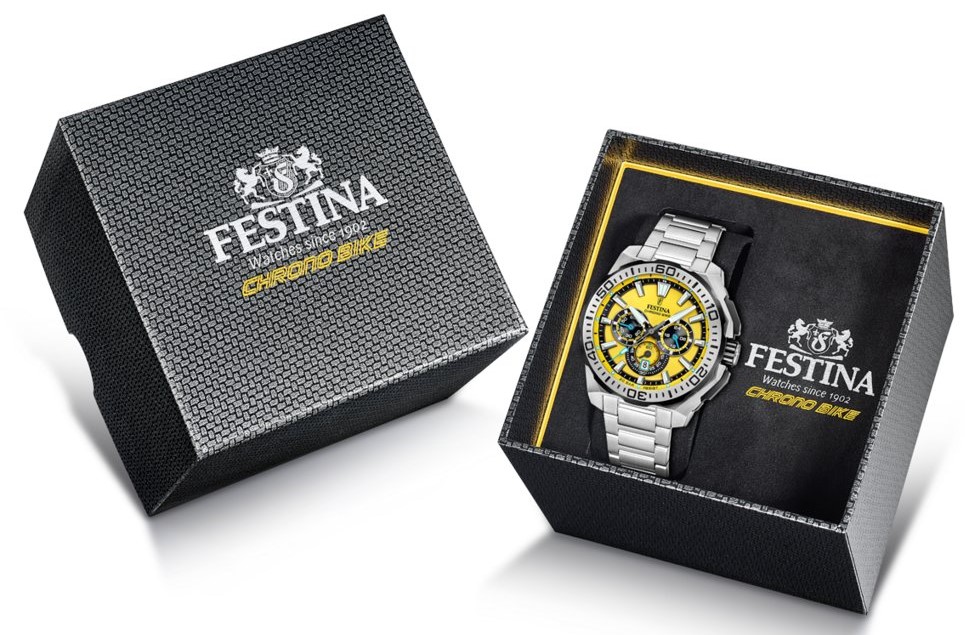 Legendarna kolekcja męskich zegarków sportowych Festina, którą charakteryzuje dynamiczny wygląd i odważna kolorystyka. Wszystkie modele wykonane są ze stali nierdzewnej lub tytanu, są wodoszczelne do 100 metrów i posiadają funkcję chronografu. Zegarek nadaje się zarówno dla zapalonych rowerzystów, jak i do noszenia na co dzień w miejskiej dżungli.