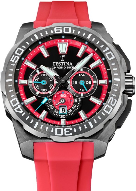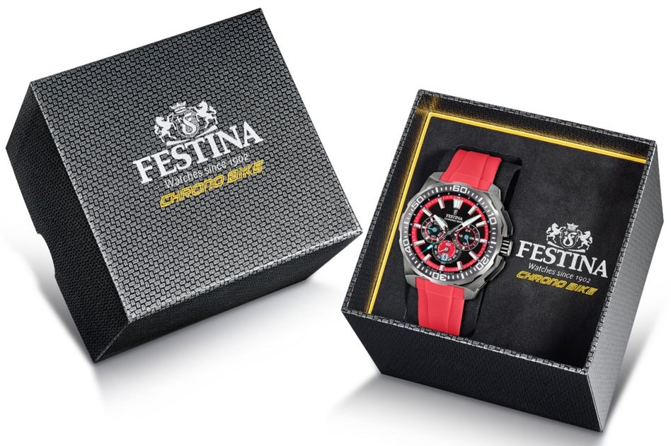 Legendarna kolekcja męskich zegarków sportowych Festina, którą charakteryzuje dynamiczny wygląd i odważna kolorystyka. Wszystkie modele wykonane są ze stali nierdzewnej lub tytanu, są wodoszczelne do 100 metrów i posiadają funkcję chronografu. Zegarek nadaje się zarówno dla zapalonych rowerzystów, jak i do noszenia na co dzień w miejskiej dżungli.