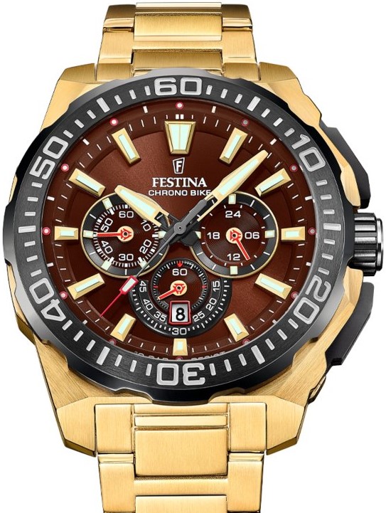 Legendarna kolekcja męskich zegarków sportowych Festina, którą charakteryzuje dynamiczny wygląd i odważna kolorystyka. Wszystkie modele wykonane są ze stali nierdzewnej lub tytanu, są wodoszczelne do 100 metrów i posiadają funkcję chronografu. Zegarek nadaje się zarówno dla zapalonych rowerzystów, jak i do noszenia na co dzień w miejskiej dżungli.