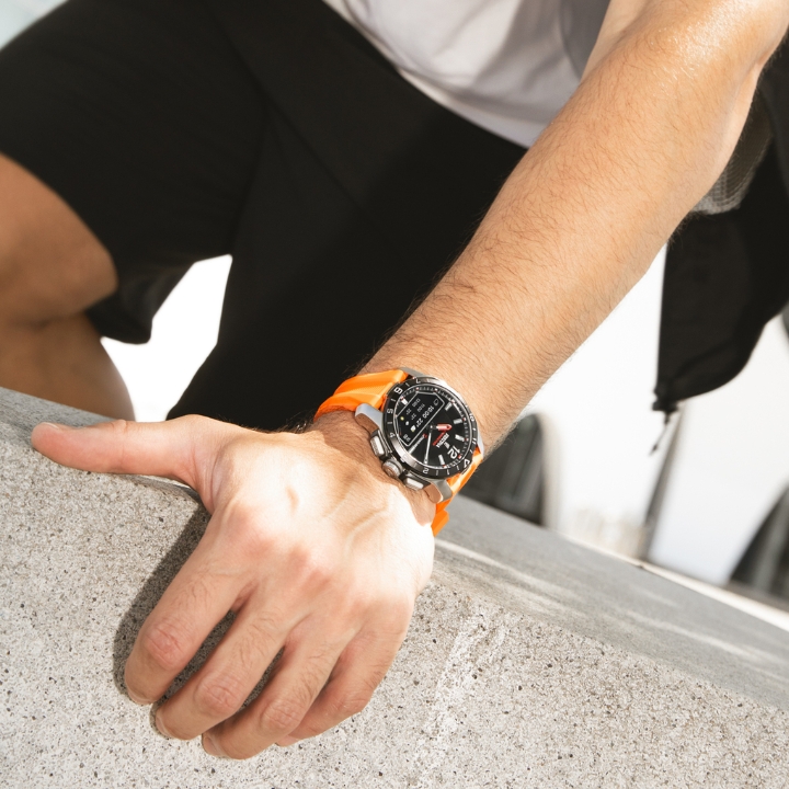 Festina Connected D 23000/D to męski inteligentny zegarek sportowy na pomarańczowym silikonowym pasku ze sprzączką. Tytanowa koperta ma średnicę 44 milimetrów. Połączona niebiesko-czarna tarcza z czerwonymi detalami jest chroniona wytrzymałym szkłem szafirowym. Wodoodporność zegarka wynosi 3 ATM, dzięki któremu jest odporny na zachlapania i mycie rąk. W pełni naładowany zegarek ma żywotność baterii do 10 dni i powiadamia Cię, gdy nadejdzie czas ładowania zegarka.