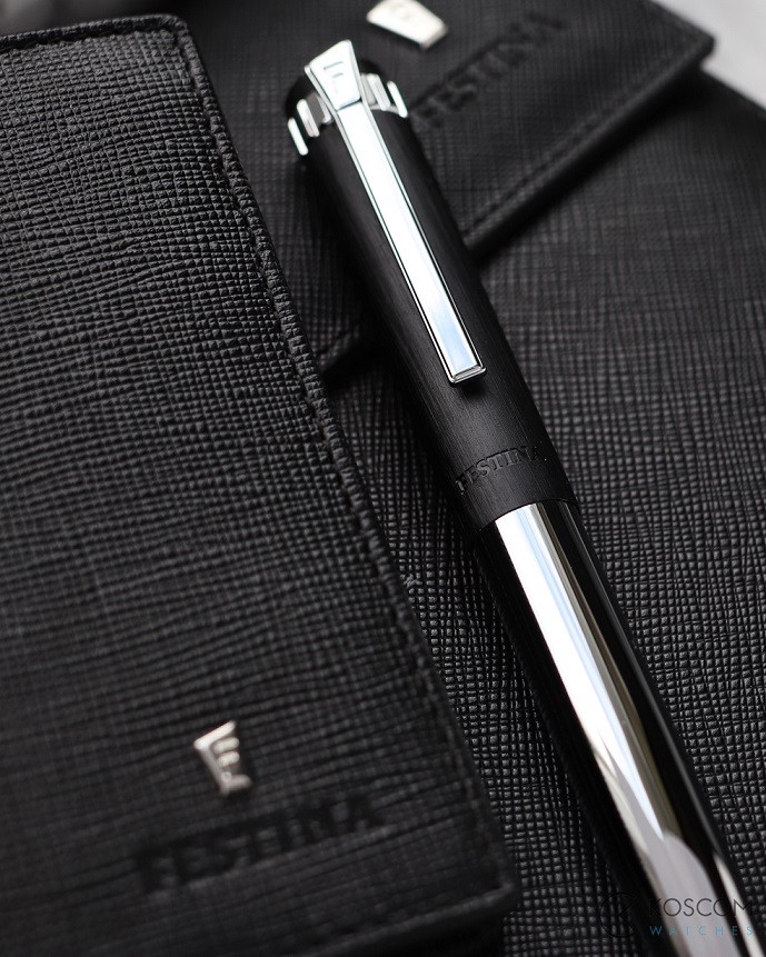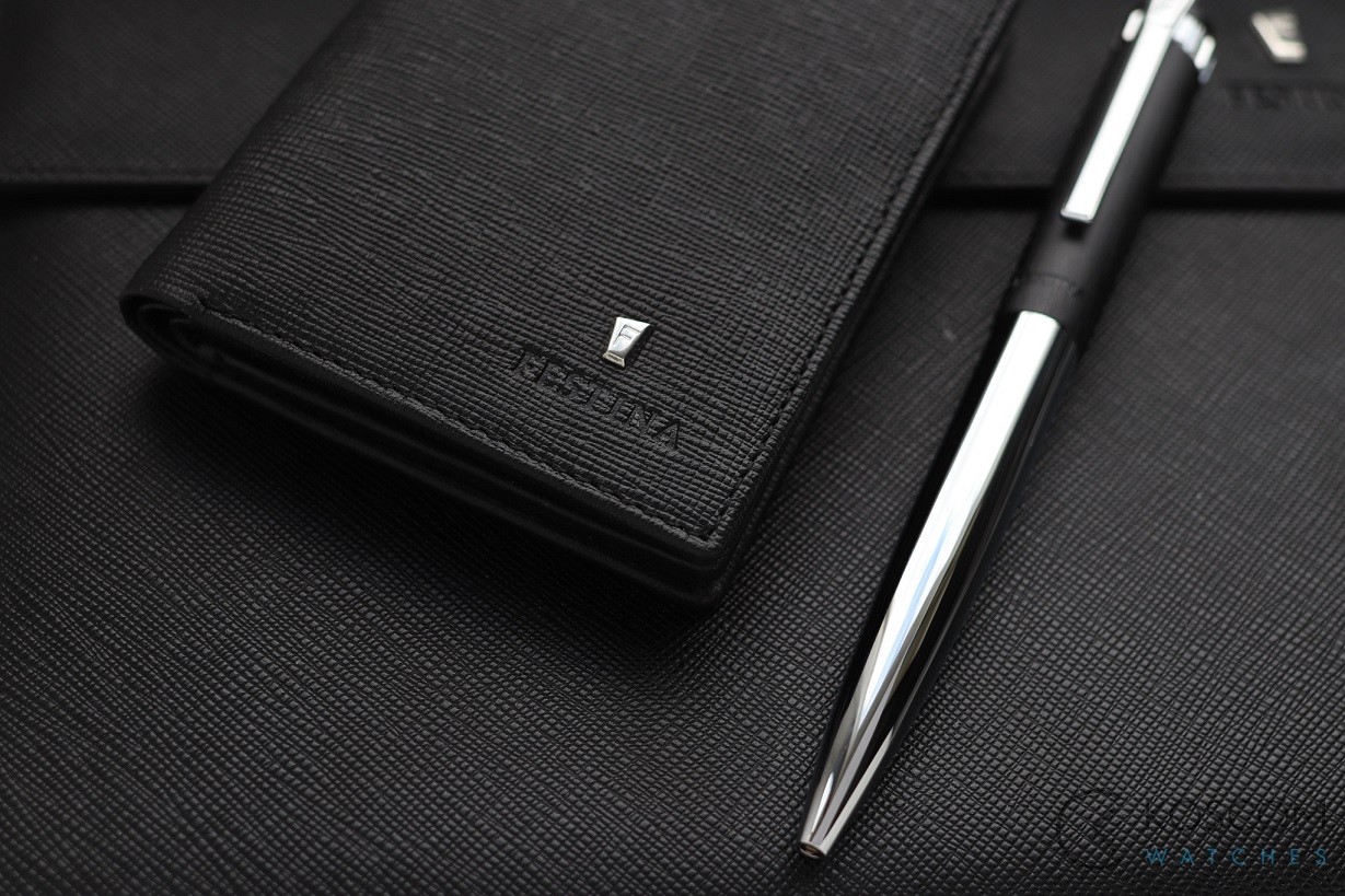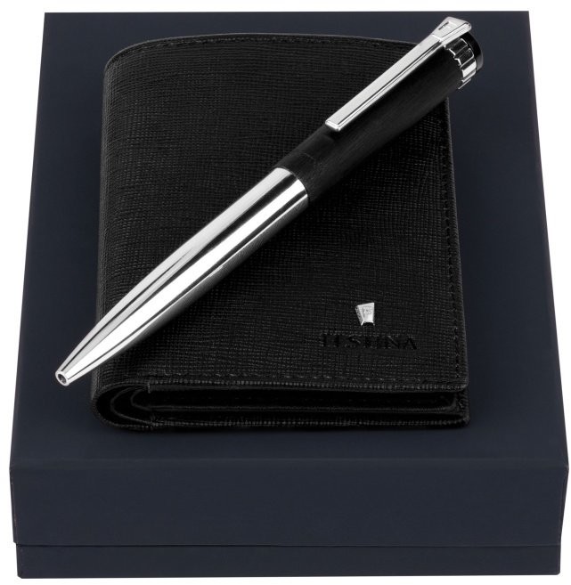 Zestaw upominkowy: portfel skórzany z kolekcji Chronobike i długopis z czarnym wkładem z kolekcji Prestige.
