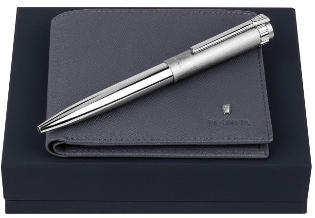 Zestaw upominkowy: portfel skórzany z kolekcji Chronobike i długopis z czarnym wkładem z kolekcji Prestige.