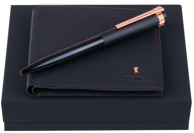 Zestaw upominkowy: portfel skórzany z kolekcji Chronobike i długopis z czarnym wkładem z kolekcji Prestige.