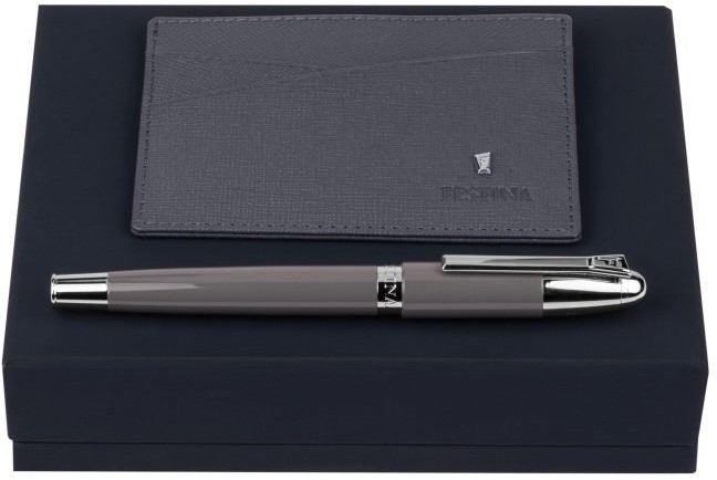 Zestaw upominkowy: skórzane etui z 5 miejscami na karty z kolekcji Chronobike i pióro wieczne z niebieskim wkładem z kolekcji Classicals.