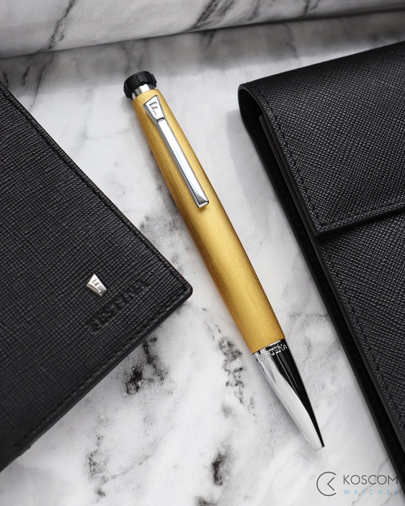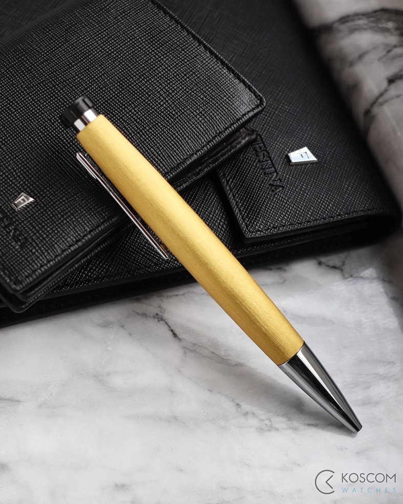 Długopis wyposażony jest w czarny wkład atramentowy .