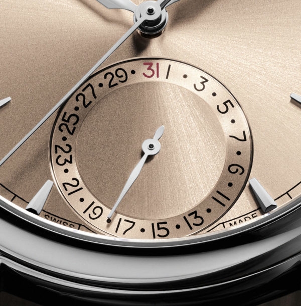 Nasz minimalistyczny etos przyjęty do projektu tarczy doprowadził do całkowitego przeprojektowania znaczników godzin, wskazówek i okręgu minutowego. Zaaplikowane znaczniki godzin są fasetowane diamentami, polerowane i nieznacznie mniejsze na godzinie 5 i 7, aby zapewnić dużo miejsca na okienko daty i wskazówkę na godzinie 6.