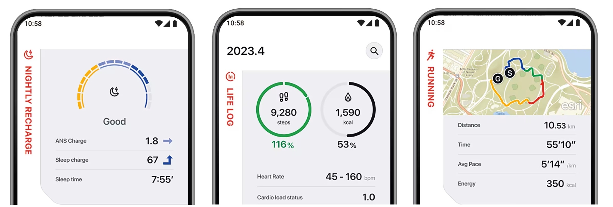 • Za pomocą aplikacji na smartfonie: ustaw plan treningowy, zarządzaj danymi dziennika treningowego (dystans, czas, który upłynął, tempo, spalone kalorie, efekt treningu aerobowego , efekt treningu beztlenowego itp.), wyszukiwanie telefonu, wyświetlanie wiadomości e-mail, czas na świecie (ponad 300 miast)