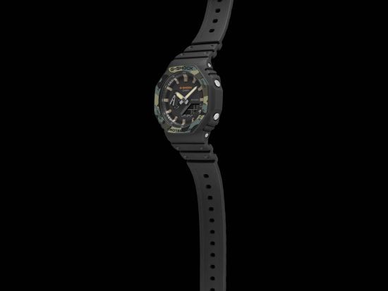 Seria G-Shock GA-2100 reprezentuje najcieńszy zegarek obecnych modeli G-Shock, a jego obudowa średnicę 45,4 milimetra wykonana z żywicy ma wysokość zaledwie 11,8 milimetry< /strong>. Etui posiada nową koncepcję ramki oryginalnego modelu G-Shock DW-5000C z 1983 roku, nawiązującą do tej serii. Oprócz nowego designu, seria ta różni się od modelu DW-5000C nową konstrukcją Carbon Core Guard, czyli wzmocnieniem koperty włóknami węglowymi, co zapewnia dużą wytrzymałość obudowy i przy tym niska waga zegarka – tylko 51 gramów. Tradycyjnie ukształtowany pasek z klamrą typu pin wykonany jest z żywicy o matowym wykończeniu. Zegarek zasilany jest baterią o żywotności do 3 lat i można z nim także nurkować, gdyż jego wodoodporność sięga 200 metrów.
