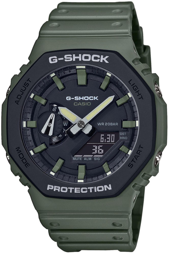 Seria G-Shock GA-2110 to najcieńszy zegarek spośród obecnych modeli G-Shock, a jego obudowa średnicę 45,4 milimetra wykonana z żywicy ma wysokość zaledwie 11,8 milimetry< /strong>. Etui posiada nową koncepcję ramki oryginalnego modelu G-Shock DW-5000C z 1983 roku, nawiązującą do tej serii. Oprócz nowego designu, seria ta różni się od modelu DW-5000C nową konstrukcją Carbon Core Guard, czyli wzmocnieniem koperty włóknami węglowymi, co zapewnia dużą wytrzymałość obudowy i przy tym niska waga zegarka – tylko 51 gramów. Tradycyjnie ukształtowany pasek z klamrą typu pin wykonany jest z żywicy o matowym wykończeniu. Zegarek zasilany jest baterią o żywotności do 3 lat i można z nim także nurkować, gdyż jego wodoodporność sięga 200 metrów.