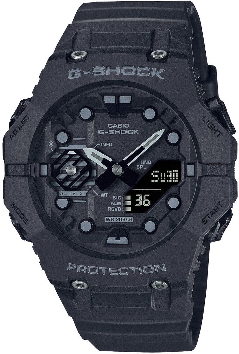Nowa seria zegarków G-SHOCK GA-B001 o nowym designie skupionym na wytrzymałości i z funkcją Smartphone Link. Odważna kolorystyka przeniesie Cię nie tylko stylowymi ulicami miasta. Te zegarki to coś więcej niż tylko modny dodatek, zapewniają także doskonałą funkcjonalność. Zsynchronizuj je ze smartfonem przez Bluetooth® i połącz je ze specjalną aplikacją, która zapewni Ci dostęp do potrzebnych funkcji Seria GA-B001 charakteryzuje się innowacyjną konstrukcją z dwiema oddzielnymi górną i dolną częścią ramki, które łączą się na godzinie 9. i na godzinie trzeciej. Dopełnieniem tej pomysłowości jest dbałość o szczegóły. Indeksy i wyświetlacz LCD o unikalnym kształcie zostały zaprojektowane jak nigdy dotąd w zegarku G-SHOCK.