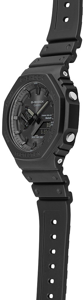 Seria G-Shock GA-B2100 reprezentuje najcieńszy zegarek obecnych modeli G-Shock, a jego obudowa średnicę 45,4 milimetra wykonana z żywicy ma wysokość zaledwie 11,9 milimetry< /strong>. Etui posiada nową koncepcję ramki oryginalnego modelu G-Shock DW-5000C z 1983 roku, nawiązującą do tej serii. Oprócz nowego designu, seria ta różni się od modelu DW-5000C nową konstrukcją Carbon Core Guard, czyli wzmocnieniem koperty włóknami węglowymi, co zapewnia dużą wytrzymałość obudowy i przy tym niska waga zegarka – tylko 52 gramy. Tradycyjnie ukształtowany pasek z klamrą typu pin wykonany jest z żywicy o matowym wykończeniu. Zegarek zasilany jest mechanizmem zasilanym energią słoneczną i można z nim także nurkować, ponieważ jego wodoodporność sięga 200 metrów. Można je także synchronizować ze smartfonem za pomocą Bluetooth.