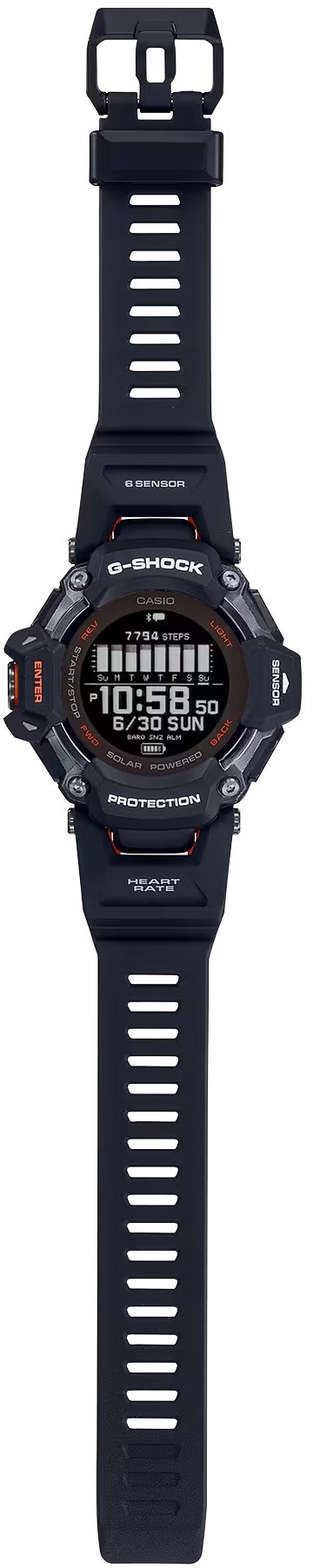 Zegarek sportowy G-Shock G-Squad GBD -H2000 pozwoli Ci monitorować swoje wyniki sportowe i jednocześnie zachować kontrolę nad swoim zdrowiem. Posiadają wbudowaną funkcję GPS umożliwiającą pomiar pozycji, dystansu i prędkości ruchu w czasie rzeczywistym podczas aktywności fizycznej. Mają 6 czujników: