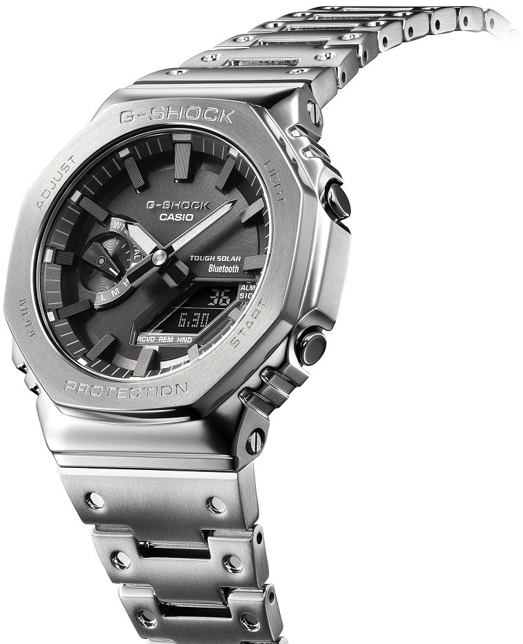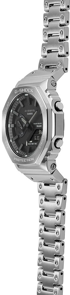 Seria G-Shock GM-B2100 to nowość bazująca na popularnym modelu G-Shock GA-B2100. Koperta średnicę 44,4 milimetra ma zaledwie 12,8 milimetra wysokości i wraz z bransoletą zapinaną na składane zapięcie wykonana jest ze stali nierdzewnej. Zegarek zasilany jest mechanizmem Tough Solar zasilanym energią słoneczną. Można z nim także nurkować, ponieważ jego wodoodporność sięga 200 metrów. Można je także synchronizować ze smartfonem za pomocą Bluetooth.