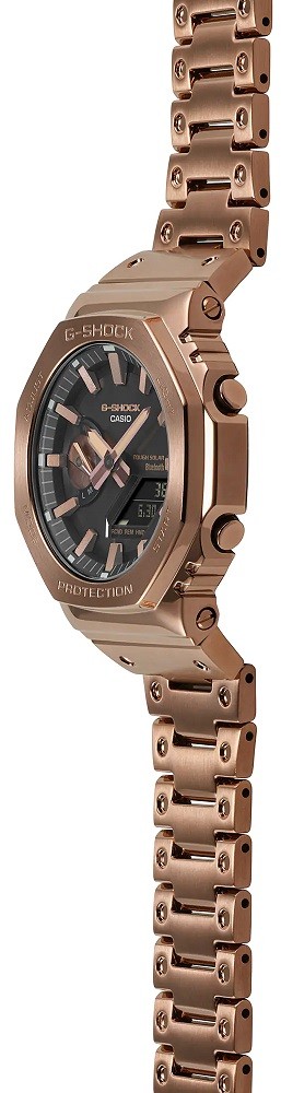 Seria G-Shock GM-B2100 to nowość bazująca na popularnym modelu G-Shock GA-B2100. Koperta średnicę 44,4 milimetra ma zaledwie 12,8 milimetra wysokości i wraz z bransoletą ze składanym zapięciem jest wykonana ze stali nierdzewnej z wykończeniem w kolorze różowego złota. Zegarek zasilany jest mechanizmem Tough Solar zasilanym energią słoneczną. Można z nim także nurkować, ponieważ jego wodoodporność sięga 200 metrów. Można je także synchronizować ze smartfonem za pomocą Bluetooth.
