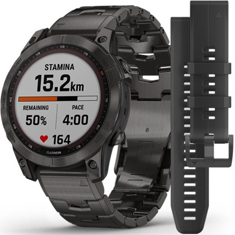 Garmin Fenix 7 Sapphire,Crbn Gry DLC Ti/Vntd Ti Bnd, GPS Watch 010-02540-39