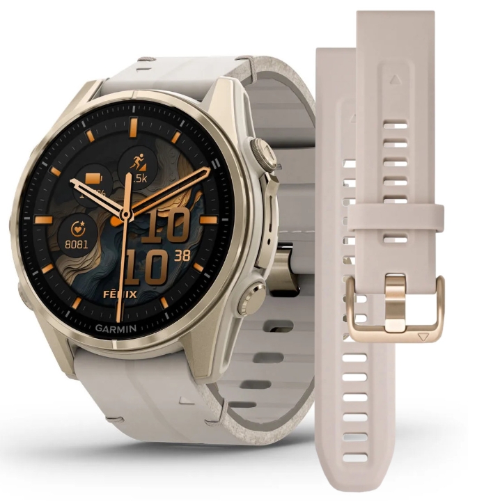 Garmin Fenix 8 43mm, AMOLED Sapphire, Soft Gold 010-02903-40 – Elegancja i wytrzymałość w jednym. Wyjątkowy smartwatch stworzony z myślą o aktywnych kobietach. Elegancka, złota koperta i delikatny pasek sprawiają, że zegarek doskonale prezentuje się zarówno na co dzień, jak i podczas treningów.