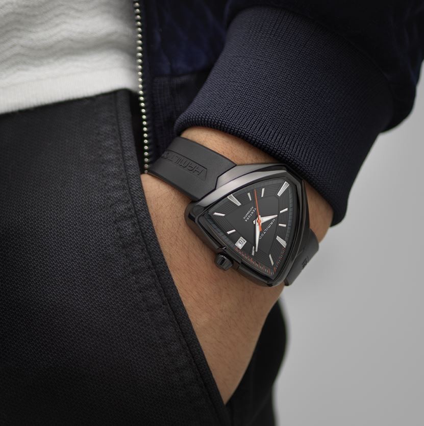 Hamilton Ventura to coś więcej niż zegarek, to manifest odwagi projektowej i jedna z najważniejszych ikon XX wieku. Jako pierwszy na świecie zegarek elektryczny o unikatowej, trójkątnej kopercie, na stałe zapisał się w historii designu i popkultury, stając się ulubionym modelem samego „Króla Rock and Rolla”. Dzisiejsza kolekcja Ventura łączy ten legendarny, kosmiczny styl z nowoczesną szwajcarską precyzją, oferując zarówno klasyczne edycje kwarcowe, jak i zaawansowane modele automatyczne typu Open Heart. Dzięki swojej unikalnej formie, Ventura nie tylko przyciąga wzrok i podkreśla silną osobowość właściciela, ale także oferuje niespodziewany komfort noszenia. To idealny wybór dla wizjonerów i kolekcjonerów, którzy chcą posiadać kawałek filmowej i muzycznej historii na własnym nadgarstku.