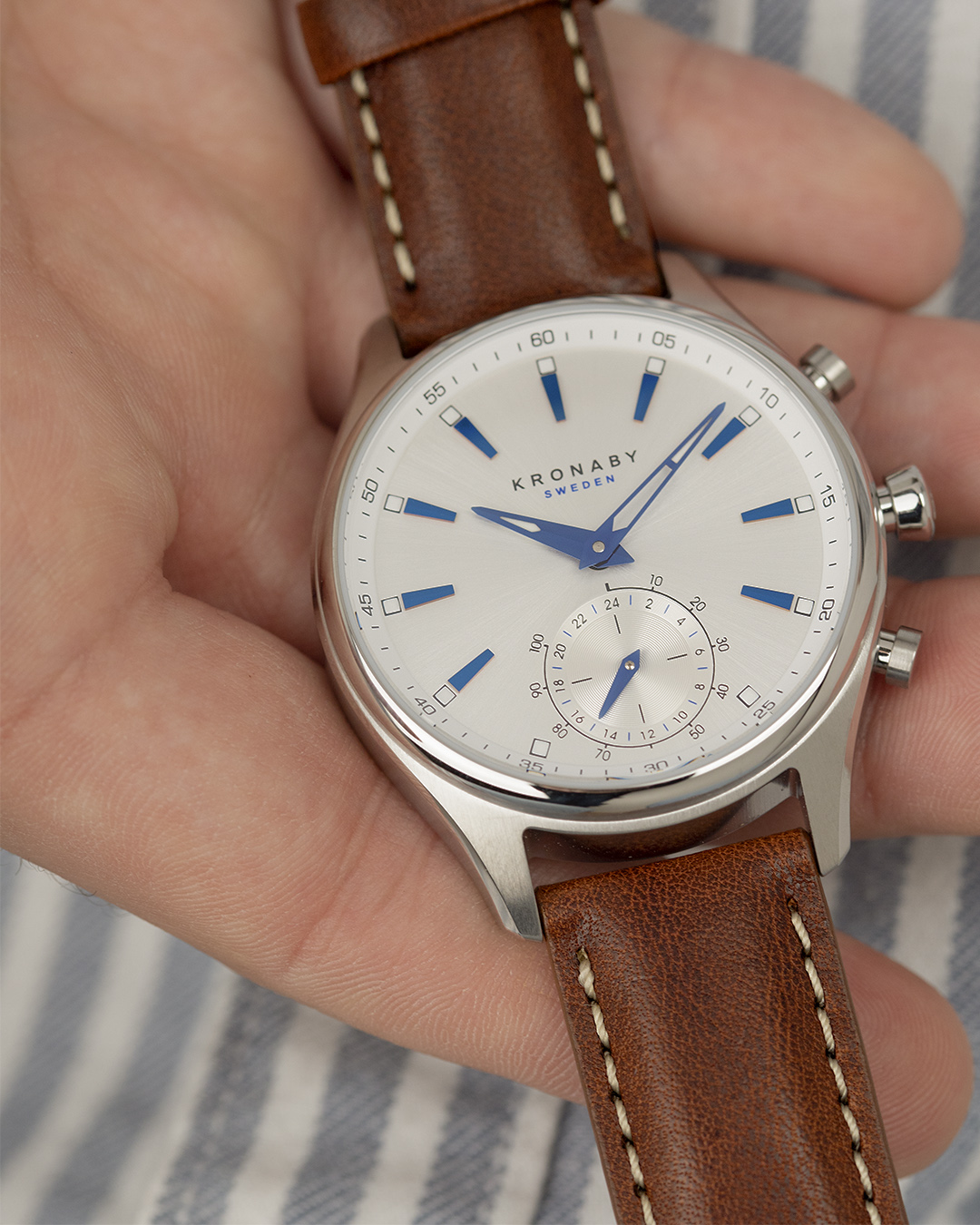 Kronaby to szwedzka manufaktura produkująca zegarki klasy premium. Powstała w 2015 roku, a w 2017 roku wypuściła pierwsze modele zegarków hybrydowych. W ramach współpracy z Apple zaprojektowała kilka kolekcji mobilnych urządzeń, które zaskakują połączeniem wielofunkcyjności i klasycznego designu. Każdy zegarek dostępny w naszym sklepie cechuje się najwyższą jakością wykończenia.
